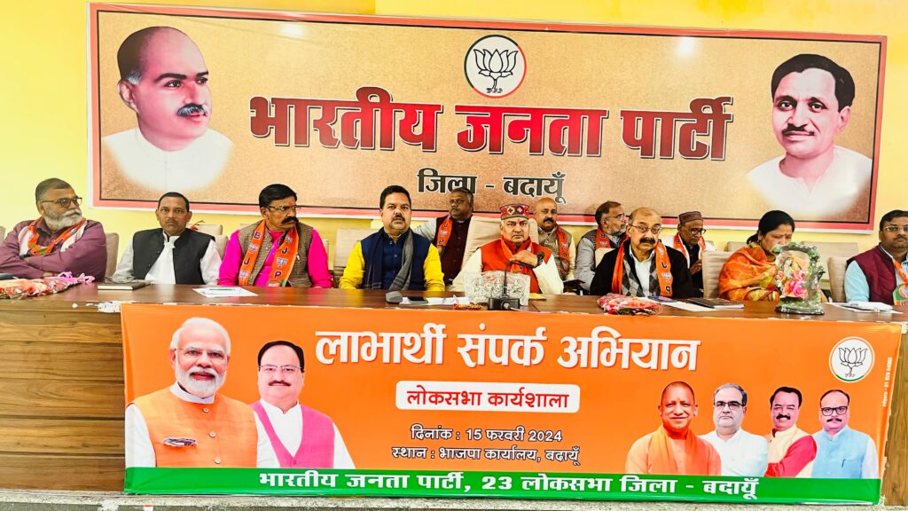 मोदी सरकार की विभिन्न योजनाओं और नीतियों को अधिक लाभार्थियों से संपर्क करना है, साथ ही कहा संपर्क अभियान में कार्य को बूथ स्तर तक संपर्क अभियान चलाकर पूरा करना है। जिला संयोजक सोशल मीडिया अनुराग दीक्षित ने कहा घर-घर जाकर लाभार्थियों से संपर्क करना, पत्रक देना और गेट पर स्टीकर लगाना व लाभार्थियों के फोटो एवं उसके अनुभव के विडियो सोशल मीडिया, नमों ऐप पर अपलोड करना है। लाभार्थी संपर्क अभियान के सयोजक देवदत्त शर्मा ने मंच का संचालन किया। इस मोके पर सदर विधायक महेश चंद्र गुप्ता, बिल्सी विधायक हरीश शाक्य, लोकसभा संयोजक हरिओम पाराशरी, जिला महामंत्री सुधीर श्रीवास्तव, एमपी सिंह राजपूत, लोकसभा विस्तारक अमित भारद्वाज, सीमा राठौर, विधानसभा प्रभारी धीरेन्द्र वीर सिंह, पुष्पेंद्र शर्मा, रवि रस्तोगी, उमेश कठेरिया, संदीप चौहान, ज्ञानेंद्र चौहान सहित अन्य पदाधिकारी व कार्यकर्ता उपस्थित रहे।
