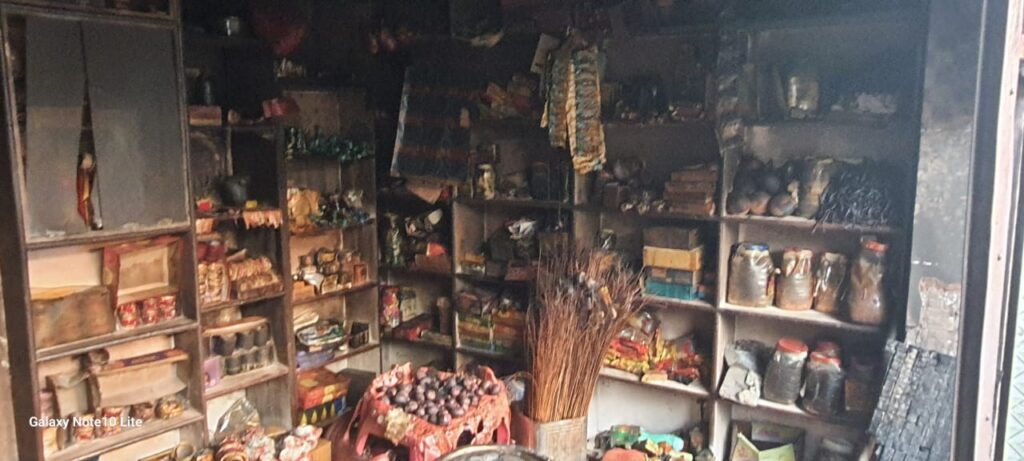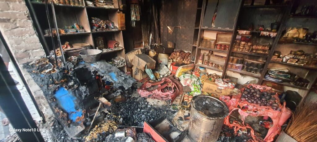 जिसमें बीती रात अचानक शार्ट शर्किट होने से आग लग गयी जिससे दुकान में रखा लगभग चार लाख का सामान जलकर खाक हो गया रात्रि गस्त पर निकले पुलिस कर्मियों ने 12:45 पर जब दुकान के अन्दर से धुआं निकलता देखा तो उसकी जानकारी दुकान स्वामी को दी मौके पर पहुंच दुकान स्वामी ने दुकान खोलकर देखा तो सारा सामान जलकर राखहो गया जैसे तैसे आग को बुझाया पीडित ने बताया कि इस अग्निकांड में चार लाख का नुकसान हो गया ।