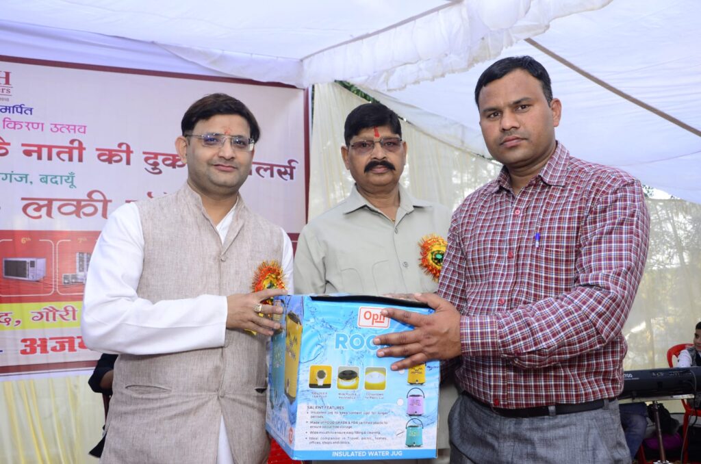 जिसमें ग्राहकों को जेवरात की बिक्री के साथ कूपन उपलब्ध कराए गए थे जिनका आज लकी ड्रा संपन्न किया गया था यह फर्म आधुनिक ज्वेलरी का एक प्रसिद्ध प्रतिष्ठान है । कार्यक्रम में नगर विधायक, सांसद बदायूं एवं पूर्व विधायक सहित अनेक गणमान्य एवं प्रतिष्ठित नागरिक तथा ग्राहक गण उपस्थित रहे ।