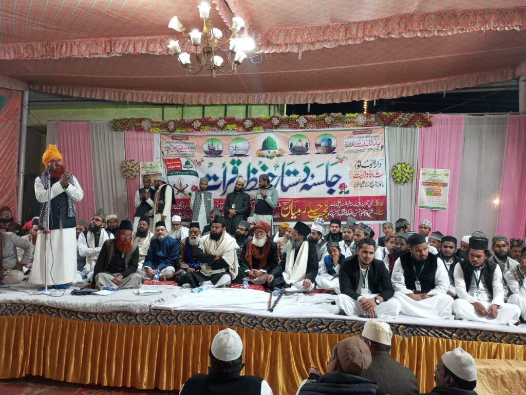 बदायूँ। शहर के मोहल्ला कबूलपुरा छोटे सरकार रोड पर दारुल उलूम शाहे विलासात का सालाना अजीमुशान जलसा दस्तारे हिफ्ज़ो किरात ( जलसा दस्तार बन्दी) महफिल मैरिज लॉन में मुनाकिद हुआ । इस सालाना जलसे में 22 तलबाओं की दस्तारबंदी हुई। वारिश होने के बाबजूद जलसे में लोगो की इतनी भीड़ देखने को मिली की बारात घर लोगो से खचा खच भरा हुआ था। पैर रखने तक की जगह नही थी।जलसे की सरपरस्तियो सदारत शेखे तरीकत नबीरय आला हजरत हज़रत अल्लामा अनस रज़ा साहिब कादरी रजवी बरेली शरीफ ने की। इस जलसे में शेखे तरीकत हज़रत मौलाना सय्यद शाह ऐहेतशाम हुसैन साहिब सज्जादानशीन खानकाहे मखदूमिया विलराम शरीफ, हज़रत अल्लामा मुफ्ती मोहम्मद मुतीउर रहमान साहिब मुफ्तिये आजम बिहार, खतीबुल हिन्द हज़रत अल्लामा कारी सगीर अहमद साहिब जौखन पुरी, खतीबे शहीर हजरत अल्लमा मोहम्मद नूरआलम साहिब कादरी बनारस की बेहतरीन तकरीरे हुई।