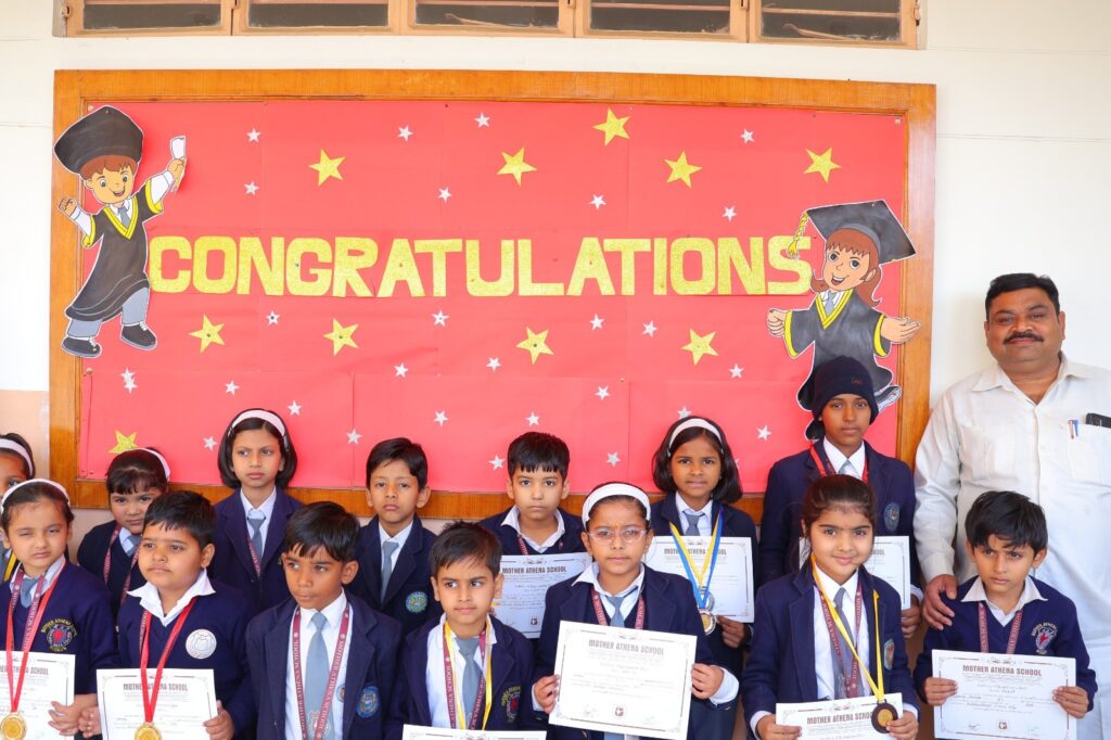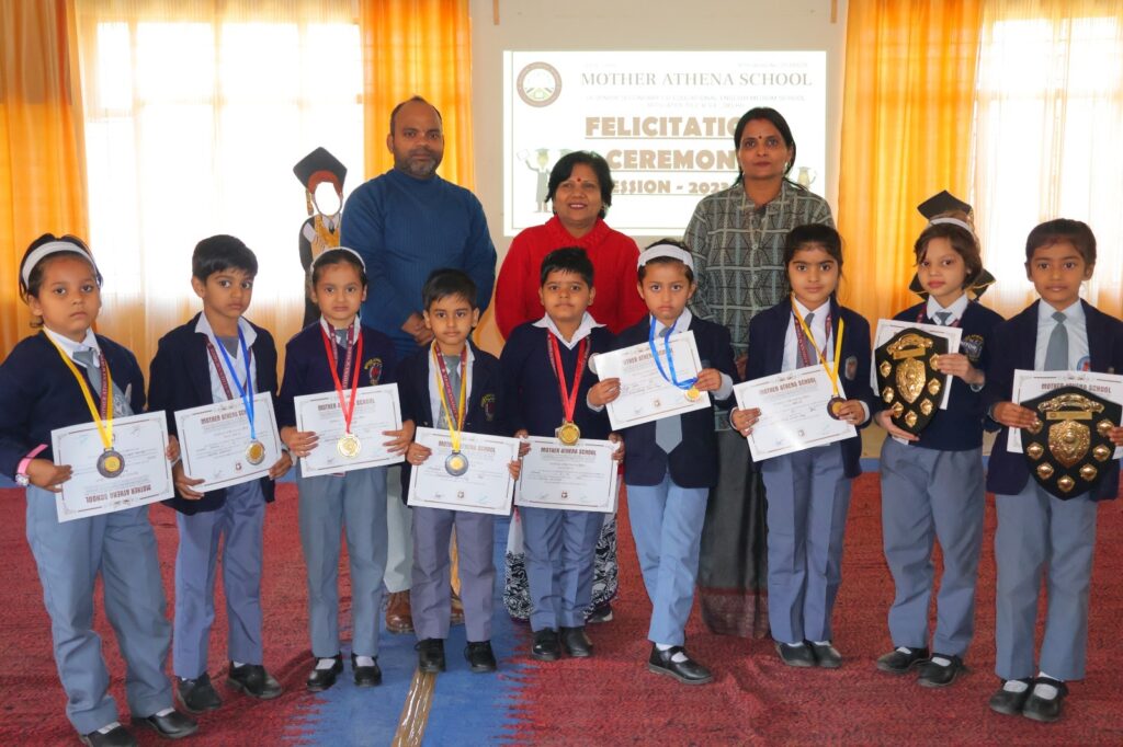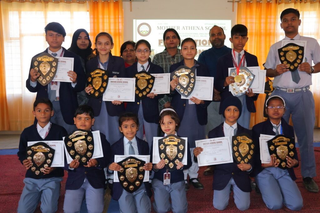बदायूँ। मदर एथीना स्कूल में आज सम्मान समारोह का आयोजन किया गया। शिक्षा सत्र के दौरान हुई विभिन्न प्रतियोगिताओं में प्रतिभाग कर अपना श्रेष्ठ प्रदर्शन करते हुए जीत हासिल करने वाले विद्यार्थियों को सम्मानित किया गया। आज ड्राइंग-पेंटिंग एवं सोलो डांस में प्रथम, द्वितीय एवं तृतीय स्थान अर्जित करने वाले विजेताओं के साथ-साथ सत्र की सभी प्रतियोगिताओं में सर्वश्रेष्ठ स्थान प्राप्त करने वाले विजेता को भी सम्मानित किया गया।विजेताओं को प्रधानाचार्या एवं सीनियर कोआॅर्डीनेटर द्वारा शील्ड, गोल्ड मैडल, रजत मैडल एवं प्रशस्ति-पत्र प्रदान कर सम्मानित किया गया।