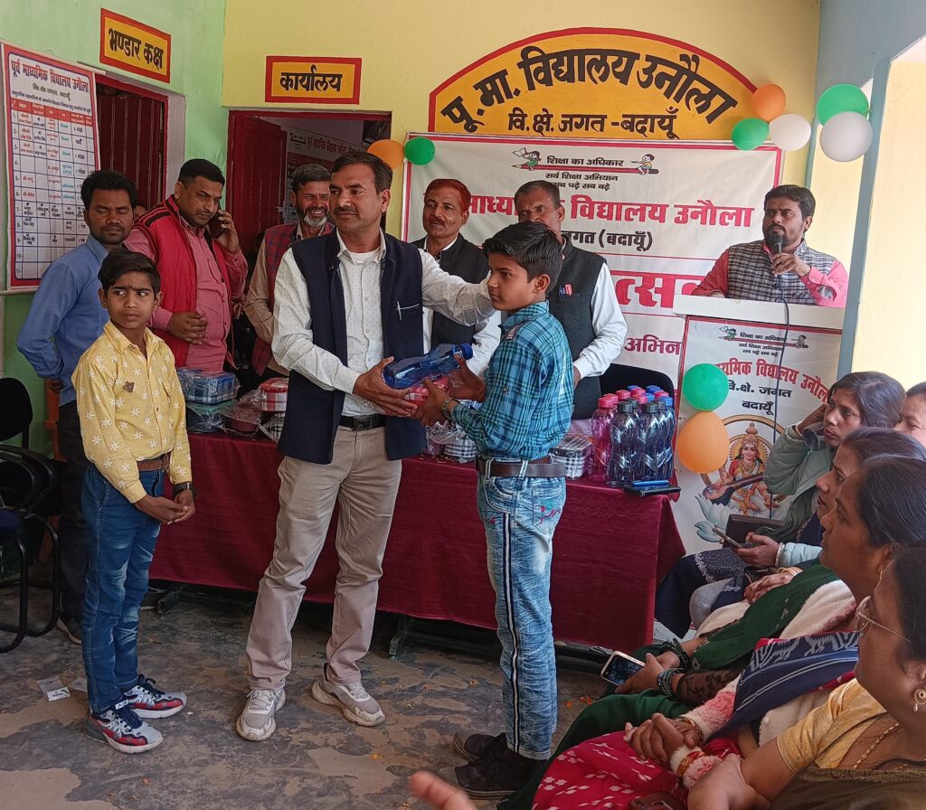 बदायूॅ। विकास क्षेत्र जगत के पूर्व माध्यमिक विद्यालय उनौला में वार्षिकोत्सव एवं विदाई समारोह का आयोजन हर्षोल्लास के साथ किया गया। कार्यक्रम का शुभारंभ मुख्य अतिथि उप-शाखा प्रबंधक पी0एन0बी0 आर0पी0 सिंह एवं ग्राम प्रधान भगवान दास, वासुदेव, एस0एम0सी0 अध्यक्ष किशनपाल एवं समाजसेवी निर्भान सिंह यादव द्वारा मां शारदे की प्रतिमा के समक्ष दीप प्रज्वलन एवं माल्यार्पण कर किया गया। कार्यक्रम का संचालन कर रहे उत्तर प्रदेशीय प्राथमिक शिक्षक के जिला प्रवक्ता एवं विज्ञान शिक्षक आयुष भारद्वाज द्वारा वर्ष भर में छात्र एवं विद्यालय हित में किए गए कार्य को एवं छात्र-छात्राओं के द्वारा शिक्षा, खेल एवं अन्य क्षेत्रों में किए गए सराहनीय प्रदर्शन से सभी को अवगत कराया गया।