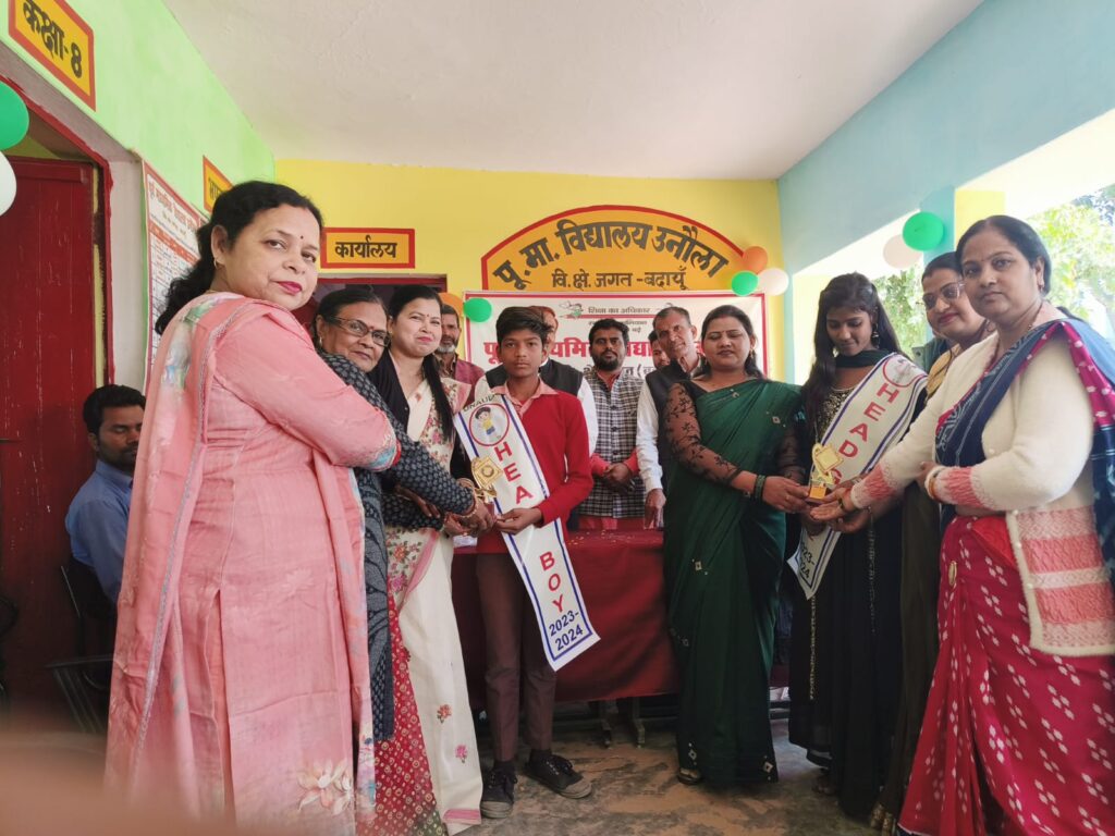 शैक्षिक सत्र 2023-24 के लिए कक्षा 8 की छात्रा सुषमा को हेड गर्ल एवं कक्षा 7 के छात्र लकी को हैड बॉय का पटका एवं प्रतीक चिन्ह देकर निरंतर अनुशासन के साथ शैक्षिक उपलब्धियां अर्जित करने हेतु प्रेरित किया गया।कक्षा 6 में 7 के छात्र-छात्राओं द्वारा अपने वरिष्ठ कक्षा 8 उत्तीर्ण करने वाले छात्रों के लिए विदाई शायरी एवं विदाई गीत प्रस्तुत कर नम आंखों से विदाई दी। इस दौरान मुख्य अतिथि आरपी सिंह द्वारा विद्यालय की सुविधाओं एवं छात्रों की शैक्षिक उपलब्धि से प्रभावित होकर विद्यालय के लिए एक कूलर देने की घोषणा की वही पूर्व ग्राम प्रधान रमेश चंद साहू के द्वारा एक पंखा वेट करने की घोषणा की गई।समस्त अतिथियों समेत आयुष भारद्वाज को सफल संचालन के लिए स्मृति चिन्ह भेंट किया गया।