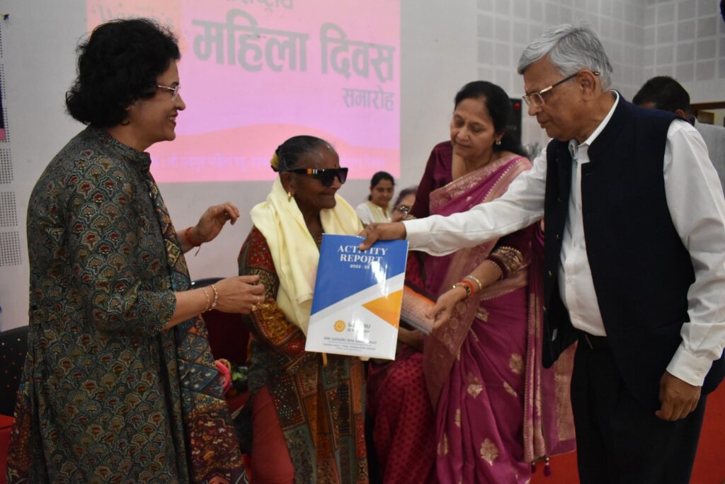 महिला सशक्तिकरण के क्षेत्र में अपना विशेष योगदान देने वाली महिलाओं को किया गया सम्मानित महिला दिवस कार्यक्रम के अवसर पर महिला सशक्तिकरण के क्षेत्र में अपना विशेष योगदान देने वाली महिलाओं को सम्मानित किया गया।जिनमे चित्रकूट कर्वी से समाज सेविका जयश्री बहन जोग, तुलसी प्रज्ञा चक्षु दिव्यांग विद्यालय से नीरू बहन वहीं महिला समिति से कौशिल्यादेवी, सावित्री देवी, गौरी बाई को समिति की विकास यात्रा में अभूतपूर्व योगदान एवं बिना अवकाश के अनवरत कार्य करने के लिए सम्मानित किया गया।