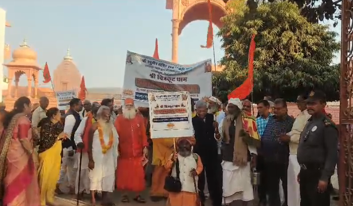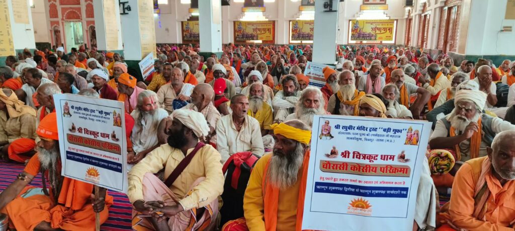 चित्रकूट। श्री रघुवीर मन्दिर ट्रस्ट (बड़ी गुफा) से प्रतिवर्ष की भांति इस वर्ष भी 11 दिवसीय चित्रकूट धाम की चौरासी कोसीय परिक्रमा यात्रा का शुभारंभ किया गया।परिक्रमा मे शामिल होने के लिए प्रतिवर्ष देश के विभिन्न प्रान्तों से साधु, संत, महन्त एवं श्रद्धालु भक्त आते हैं,और बढ़ चढ़कर भाग लेते हैं। परिक्रमा प्रतिवर्ष फाल्गुन मास की शुक्ल पक्ष की द्वितीया तिथि से प्रारंभ होकर द्वादशी तक चलती है। इस वर्ष लगभग 900 यात्री इस परिक्रमा में शामिल हो रहे हैं,जो पैदल चलकर भगवान राम की विहार स्थली श्री चित्रकूट धाम के चारो ओर कुल 84 कोस की यात्रा कर वापस रघुवीर मन्दिर आयेंगे।
