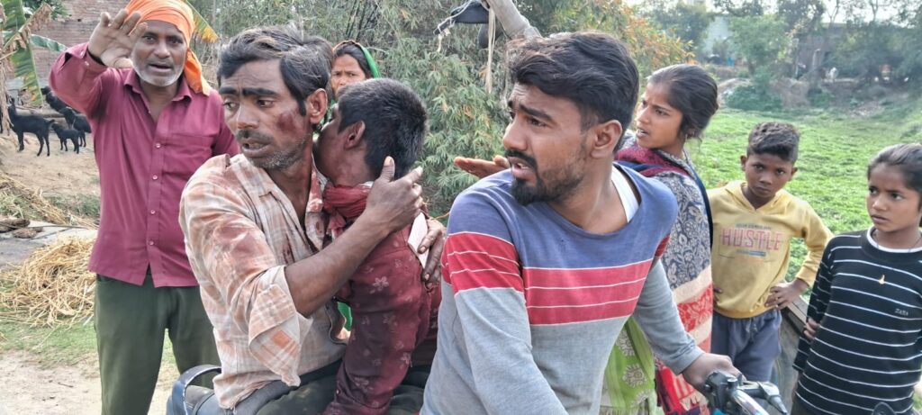 न्यूरिया। क्षेत्र ग्राम हरकिशनापुर के निकट बाघ ने नाबालिक बालक पर हमला कर किया लहूलुहान।न्यूरिया क्षेत्र ग्राम पंडरी निवासी अमर सिंह पुत्र नोखेलाल (16)बर्षीय,अपने चाचा ध्यान के साथ आज सुबह 8:30 हरकिशनापुर निवासी निर्विरकार सिंह के खेत मे गन्ने का ठेका लेकर गन्ना छीलने गया था। गन्ने के खेत मे घात लगाए बैठे वाघ ने अमर सिंह पर हमला कर दिया जिससे वह बुरी तरह घायल हो गया।बाघ का हमला देख साथी शंकर व हरपाल ने वाघ से बामुश्किल छुड़ाया अगर छुड़ाने में 2 मिनट की देरी हो जाती तो बाघ अमर सिंह को खींचकर ले जाता और अपना निवाला बना लेता । कुछ दूरी पर गन्ने के खेत में और भी मजदूर गन्ने के खेत में काम कर रहे थे वह भी दौड़ते हुए चले आए और उसके बाद ग्रामीण घायल को घर लेकर आये और उसे जिला अस्पताल ले जाया गया। जबकि बाघ अभी भी गन्ने के खेत मे बैठा हुआ है।