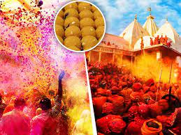 मथुरा। ब्रज में होली का उत्सव मनाया जा रहा है। इसमें शामिल होने के लिए देश ही नहीं विदेशों से भी श्रद्धालु पहुंचे। उन्होंने बरसाना की लड्डू होली, रंगो की होली आदि का जमकर आनंद लिया। इस मौके पर राधा-कृष्ण स्वरूप कलाकारों ने अपनी प्रस्तुति दी और होली खेली। जगह-जगह फगुआ गीतों का गायन किया जा रहा है। ब्रज के निवासी होली उत्सव में डूबे हुए हैं। वह आफने आराध्य की भक्ति में लीन होकर उत्सवों का आनंद ले रहे हैं। इसी कड़ी में बरसाना में रविवार को लड्डू होली का आयोजन किया गया। इसका देश-विदेश से आए श्रद्धालुओं ने आनंद लिया। विश्वविख्यात लठामार होली की पूर्व संध्या पर लाड़लीजी मंदिर में लड्डू होली मनाई गई। इसको देखने के लिए लाखों श्रद्धालु बरसाना पहुंचे। लड्डू होली को लड्डू प्रसाद के रूप में पांडे द्वारा कई टन लड्डू लुटाए गए। लड्डू प्रसाद को पाने के लिए श्रद्धालुओं ने जमकर इन्हें लूटा।