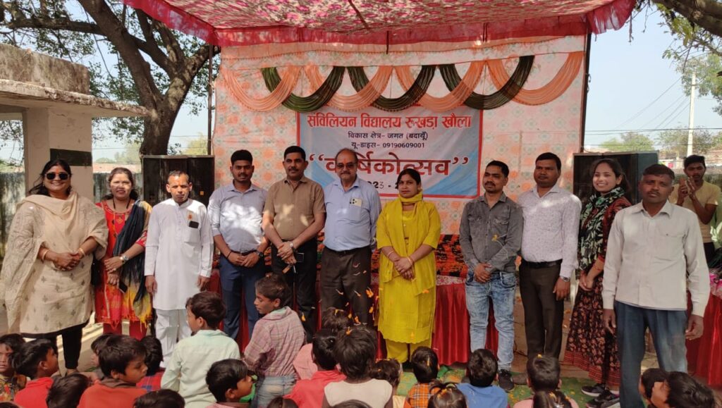 बदायूँ। परिषदीय विद्यालयों में भी आजकल कॉन्वेंट विद्यालयों की तरह वार्षिकोत्सव का आयोजन किया जाने लगा है। इसी क्रम में आज विकास क्षेत्र जगत के संविलियन विद्यालय रुखड़ा खौला में वार्षिकोत्सव बड़े ही हर्षोल्लास के साथ मनाया गया। कार्यक्रम का शुभारंभ उत्तर प्रदेशीय प्राथमिक शिक्षक संघ के जिलाध्यक्ष संजीव शर्मा एवं खंड शिक्षा अधिकारी रमेश चंद्र जौहर के द्वारा मां सरस्वती की प्रतिमा के समक्ष दीप प्रज्वलित कर किया गया। अतिथियों के सम्मान में छात्राओं द्वारा स्वागत गीत प्रस्तुत किया गया। इस दौरान सत्र 2023 24 में विद्यालय के शैक्षिक एवं भौतिक परिवेश में किए गए परिवर्तनों से सभी आगंतुकों को अवगत कराया गया। सत्र में विभिन्न क्षेत्रों में शानदार प्रदर्शन करने वाले छात्राओं को भी पुरस्कृत कर उनका उत्साहवर्धन किया गया।