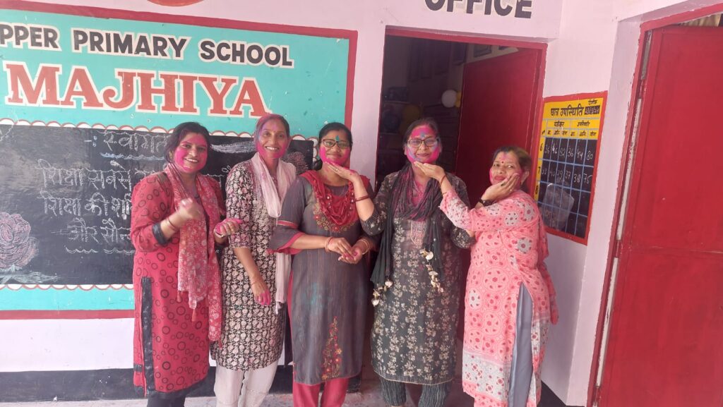 बदायूं l विकासखंड जगत क्षेत्र के उच्च प्राथमिक विद्यालय मझिया मैं परीक्षा के बाद बच्चों ने शिक्षकों के साथ गुलाल से होली खेली l बच्चों ने एक दूसरे को भी गुलाल लगाकर होली की शुभकामनाएं दी l इंचार्ज प्रधानाध्यापक गीता सिंह ने बच्चों को होली के पर्व को परंपरागत तरीके से प्रेम और भाईचारे से मनाने को कहा l
