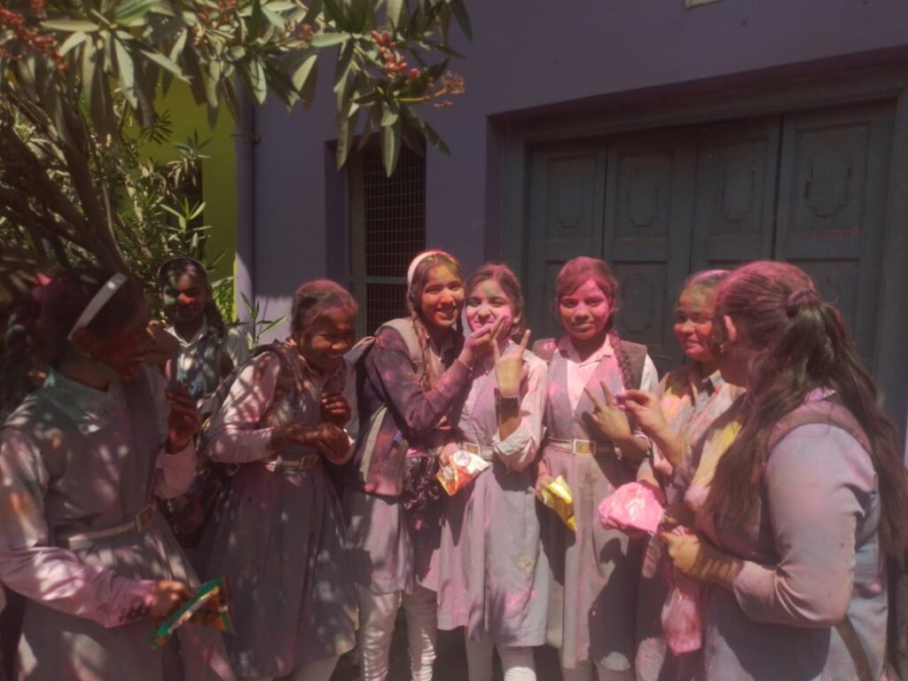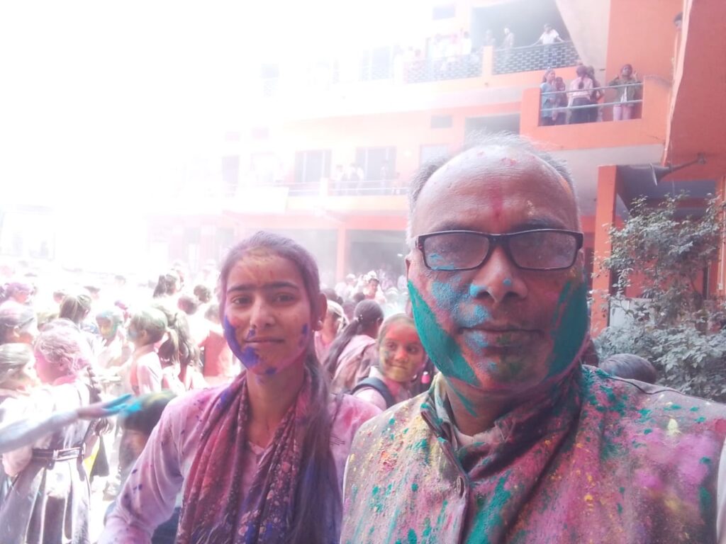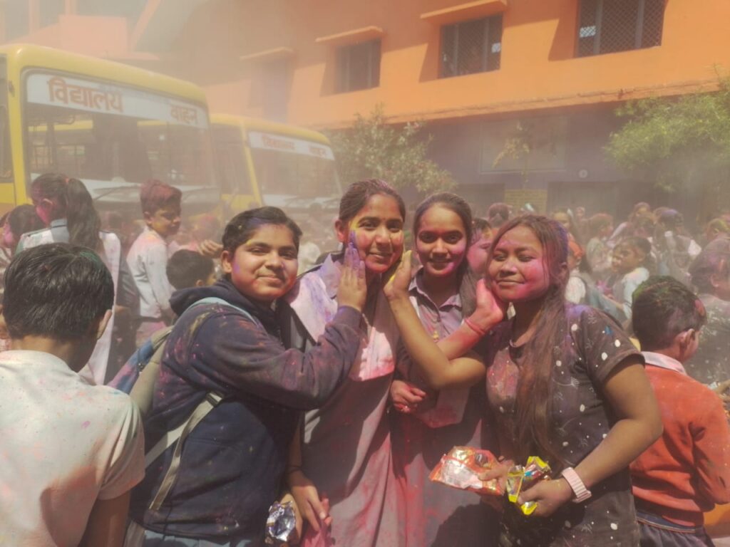 छात्र-छात्राओं ने एक दूसरे को अबीर गुलाल लगाकर तथा आचार्य जनों को अबीर गुलाल लगाकर तथा पैर छूकर होली का पर्व मनाया। विद्यालय के शिशु भारती प्रमुख आचार्य राजेश कुमार शर्मा ने होली पर्व की बधाई देते हुए छात्र-छात्राओं से कहा, होली के अवसर पर रसायन युक्त रंगो का प्रयोग ना करें। प्राकृतिक रंगों का प्रयोग कर होली का पर्व मनाए।