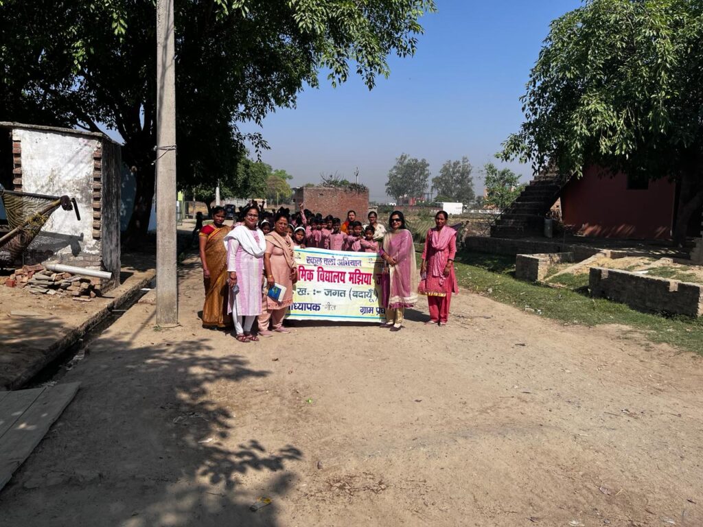 बदायूं l स्कूल चलो अभियान के तहत सोमवार को विकासखंड जगत क्षेत्र के गांव मझिया में प्राथमिक और उच्च प्राथमिक विद्यालय के शिक्षकों और बच्चों ने रैली निकालकर अभिभावकों को अपने बच्चों का नामांकन कराए जाने को प्रेरित किया l उच्च प्राथमिक विद्यालय की इंचार्ज प्रधानाध्यापक गीता सिंह ने स्कूल चलो रैली को हरी झंडी देकर रवाना किया l रैली गांव के सभी प्रमुख रास्तों से होकर गुजरी बच्चे तरह-तरह के नारे लगाते हुए चल रहे थे l