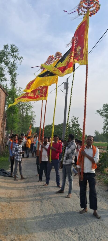 न्यूरिया। पंडरी से मा पूर्णागिरी रवाना हुई पाँचवी पद यात्रा। हर बर्ष की भांति इस बर्ष भी पंडरी गांव से माता रानी के दर्शन के लिए पदयात्रा करते हुये पूर्णागिरी जाने बाले श्राद्धालुओ ने आज सुबह से तैयारी कर माता रानी का भव्य सिंघासान बना कर सब का मन मोह लिया।इस मौके पर पग यात्रा करने बाले श्रद्धालुओ ने बताया कि हर बर्ष धूमधाम से माता रानी की झंडी का आयोजन कर मा पूर्णागिरी मंदिर पर गांव के सैकड़ो श्रद्धालु पैदल जाते है।और माता रानी सबकी मनोकामना पूरी करती है।जगह जगह रास्ते मे स्वागत के साथ जलपान और भोजन की भी ब्यवस्था भक्त जन करवाते रहते है।यह झंडी अब चार दिन बाद वापस होगी जिसके बाद गांव मे विशाल भंडारा का आयोजन किया जायेगा।पर मौके पर पग यात्रा कमेटी पंडरी के सभी भक्त जन शामिल रहे। रिपोर्टर सुमित राठौर