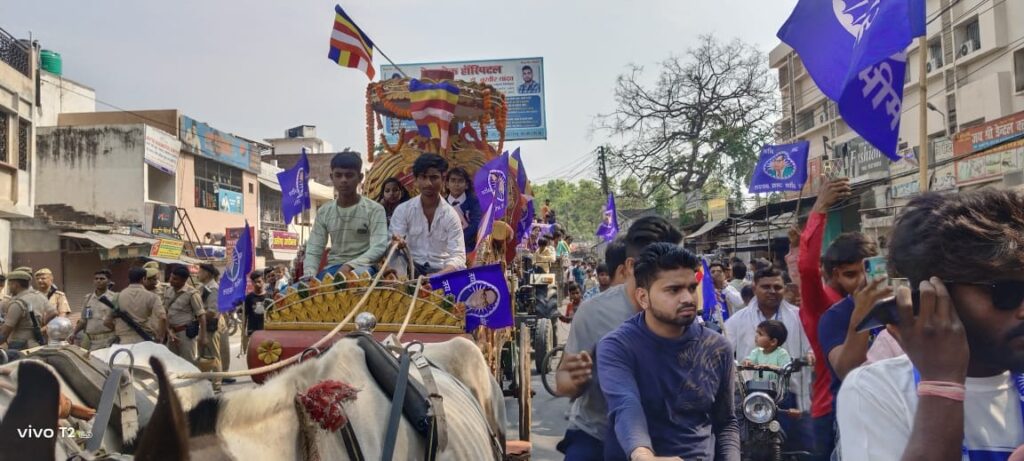 डॉ अंबेडकर जयंती पर आकर्षक झांकियों के साथ धूमधाम से शोभायात्रा निकाली गई