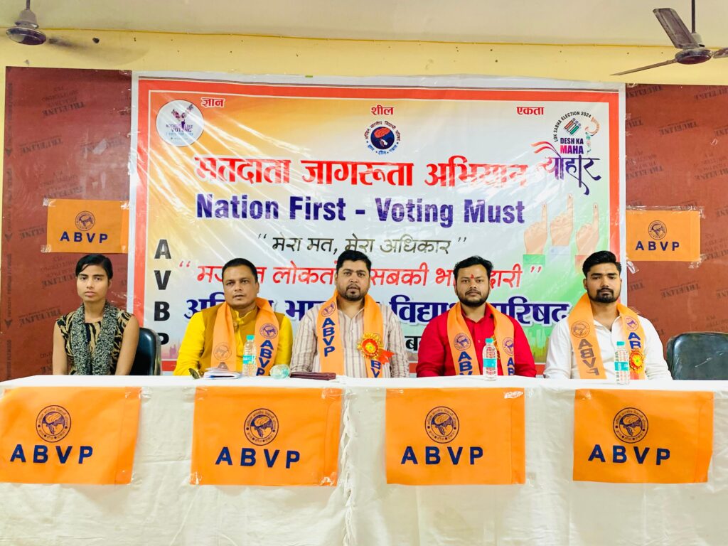 पटेल ने ये भी कहा कि चुनाव में मतदाता अधिक से अधिक मतदान करें इसके लिए परिषद शत-प्रतिशत मतदान का लक्ष्य लेकर इस अभियान में भाग लेगी एवं इस मतदाता जागरण अभियान के तहत सभी जिलों एवं प्रखंडों में युवा मतदाता सम्मेलन महाविद्यालय एवं विश्वविद्यालय परिसर में’उभरता भारत नई आशाएं’विषय पर संगोष्ठी का आयोजन करेगी। साथ ही नुक्कड़ सभा एवं संपर्क अभियान चलाकर युवाओं एवं छात्रों को वोट का महत्व समझाएगी। इस बीच विशेष रूप से उपस्थित नगर विधायक महेश चंद्र गुप्ता जी ने कहा कि देश का युवा स्थिर, मजबूत एवं पारदर्शी सरकार बनाने के लिए युवाओं का मतदान में हिस्सेदारी सुनिश्चित करेगी। भारत विश्व गुरू बनने की ओर अग्रसर है जिसमें युवाओं की बहुत बड़ी भूमिका है । परिषद के जिला संयोजक मोहित शर्मा ने सभी का धन्यवाद ज्ञापित किया और कहा कि मतदान में नोटा का विकल्प रखा गया है उसका प्रयोग न करते हुए लोकतंत्र में विश्वास रखने वाले प्रत्येक मतदाता को अपना मत स्वच्छ एवं योग्य प्रत्याशी ताकि लोकतंत्र को मजबूत किया जा सके।