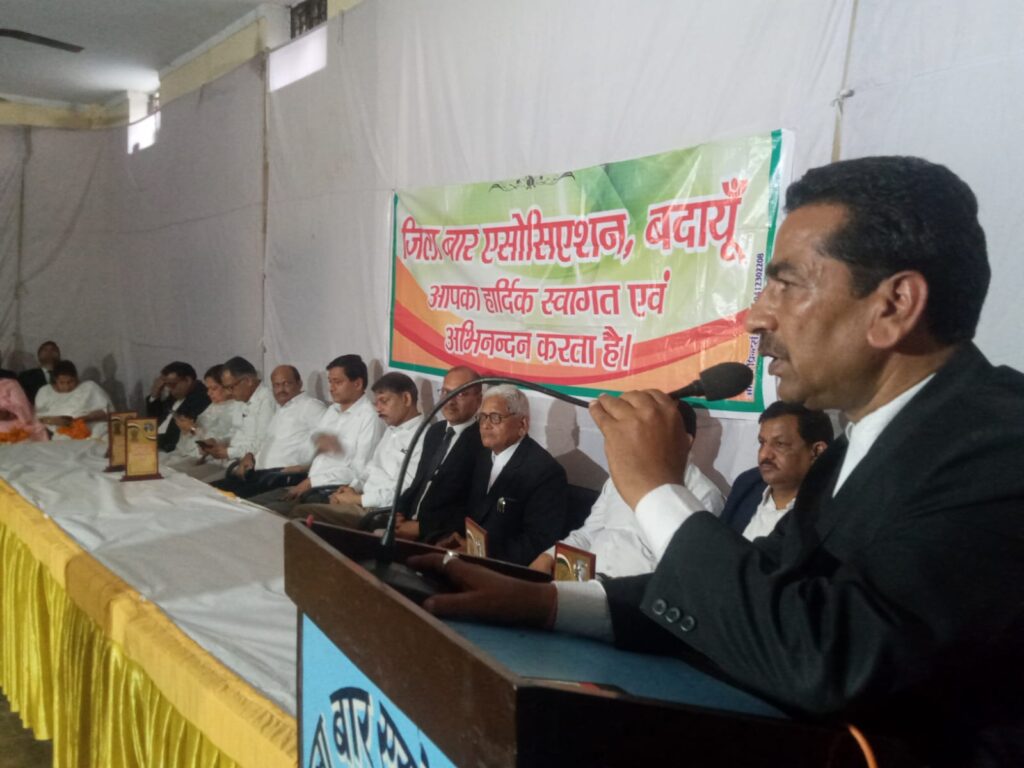 (विधि सवाददाता सुधीर कश्यप) बदायूँ। जिला बार एसोसिएशन ने सोमवार को कार्यक्रम आयोजित कर बदायूं से स्थानांतरित हुए न्यायिक अधिकारियों को प्रतीक चिन्ह भेंटकर सम्मानित कर विदाई दी कार्यक्रम म जनपद न्यायाधीश पंकज अग्रवाल समेत समस्त न्यायिक अधिकारी मौजूद रहे। जिला बार एसोसिएशन के मथुरा प्रसाद मेमोरियल हॉल में बार एसोसिएशन के महासचिव संदीप कुमार मिश्रा ने जनपद न्यायाधीश पंकज अग्रवाल को प्रतीक चिन्ह भेंटकर कर सम्मानित किया उसके बाद बदायूं से स्थानांतरित हुए न्यायिक अधिकारियों जिनमें अपर जिला जज अखिलेश कुमार ,मोहम्मद नसीम , सारिका गोयल , नवनीत कुमार भारती ,डॉक्टर मोहम्मद इलियास ,उदयभान सिंह , विजय कुमार गुप्ता , अब तक सीजेएम रहे मोहम्मद साजिद प्रथम, अपर मुख्य न्यायिक मजिस्ट्रेट द्वितीय प्रियंका, मनाली चंद्रा को प्रतीक चिन्ह भेंटकर सम्मानित कर विदाई दी ।