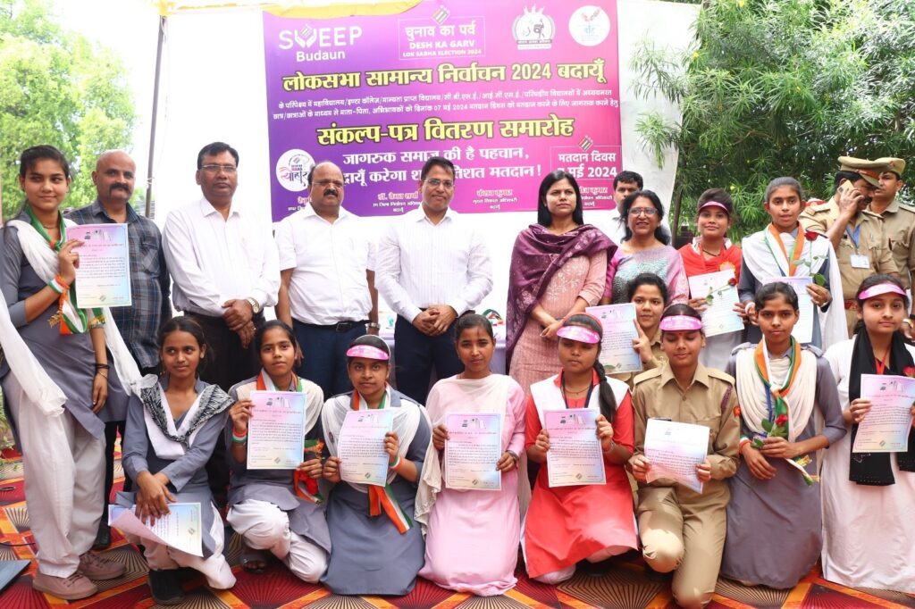 बदायूँ। लोक सभा सामान्य निर्वाचन-2024 में मतदान दिवस 07 मई 2024 में मतदाताओं को शत-प्रतिशत मतदान करने के लिये एवं लोकतंत्र में अपनी सशक्त भूमिका निभाने के लिये मतदान की उपयोगिता के प्रति लोगों को जागरूक करने के उद्देश्य से स्वीप के तहत प्रत्येक स्तर पर स्वीप गतिविधियों का आयोजन किया जा रहा है। इस क्रम में अभिभावक संकल्प पत्र वितरण समारोह के आयोजन का शुभारम्भ राजकीय महिला महाविद्यालय घंटाघर में सामान्य प्रेक्षक के०के०सुदामा राव ने किया। प्रेक्षक के०के०सुदामा राव ने उपस्थित युवा वोटर्स, शिक्षकगण उपस्थित नागरिकों को सम्बोधित करते हुए कहा कि भारत का लोकसभा सामान्य निर्वाचन विश्व मे लोकतंत्र का सबसे बड़ा महात्यौहार है।