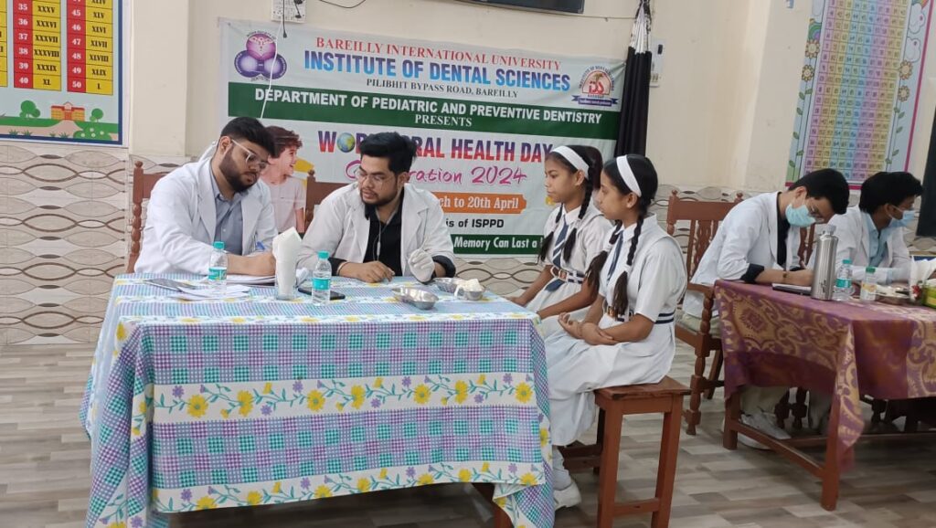 बदायूँ। पंजाबी चौक स्थित श्री गुरु नानक जूनियर हाई स्कूल में आज रोहिलखंड इंस्टिट्यूट ऑफ़ डेंटल कॉलेज बरेली की तरफ से दांतों के परीक्षण के लिए एक शिविर लगाया गया। जिसमें डॉक्टरों द्वारा कक्षा P.G से लेकर 8 तक के बच्चों के दांतों का परीक्षण किया गया।