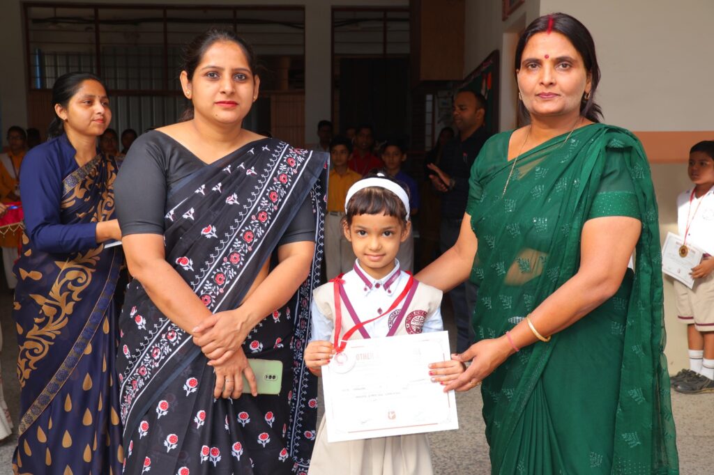 जिनको प्रधानाचार्या द्वारा प्रशस्ति-पत्र एवं मैडल प्रदान कर सम्मानित किया गया। इसके अलावा प्रतियोगिताओं में द्वितीय एवं तृतीय स्थान प्राप्त करने वाले विद्यार्थियों को भी सम्मानित किया गया। साथ ही पोस्टर मेकिंग में लावण्या सिंह एवं ड्राइंग में निंजा शेख को सर्वश्रेष्ठ स्थान प्राप्त करने के लिए भी सम्मानित किया गया। विद्यालय की निदेशिका चयनिका सारस्वत ने विजेताओं को बधाई देते हुए बताया कि विद्यालय में आयोजित प्रतियोगिताओं में प्रतिभाग कर अपनी प्रतिभा का प्रदर्शन करने वाले विजयी प्रतिभागियों को अभिप्रेरित करने हेतु तथा साथ ही अन्य को प्रोत्साहित करने के लिए विजेताओं को सम्मानित कर उनका उत्साहवर्धन करना अत्यंत आवश्यक होता है।