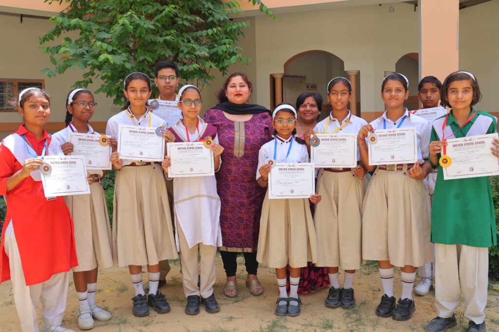 बदायूँ। मदर एथीना स्कूल में आज प्रार्थना सभा में ‘पोस्टर मेकिंग एवं ड्राइंग प्रतियोगिता‘ के विजेताओं को सम्मानित किया गया। जिसके अंतर्गत कक्षा -1 से कक्षा -5 तक के विद्यार्थियों के लिए आयोजित ड्राइंग एवं पेंटिंग प्रतियोगिता में कक्षा एक -ब से अनन्या वर्मा, कक्षा दो-अ से अथर्व यादव, कक्षा तीन-स से काव्य गंगवार, कक्षा चार-ब से भूमि एवं कक्षा पांच-ब से निंजा शेख को प्रथम स्थान प्राप्त करने हेतु सम्मानित किया गया। इसके अलावा कक्षा-छह से कक्षा-नौ तक की ‘पोस्टर मेकिंग प्रतियोगिता‘ में कक्षा छह-अ से अंश प्रताप, कक्षा सात-स से राधिका, कक्षा आठ-अ से साक्षी भारती एवं कक्षा नौ-ब से लावण्या सिंह ने प्रथम स्थान प्राप्त किया।