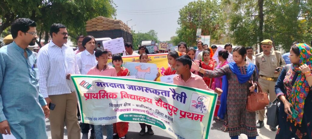 सैदपुर । मतदान जागरूकता कार्यक्रम के अंतर्गत सय्यद ग़ालिब अली तालिब अली मेमोरियल इंटर कॉलेज में एक वृह्द गोष्ठी का आयोजन किया गया जिसमें एसडीएम बिसौली कॉलेज स्टाफ एवं बेसिक शिक्षा विभाग के अध्यापकगण एआरपीगण छात्रगण व नगर के गणमान्य मौजूद रहे । कार्यक्रम के पश्चात छात्रों सहित नगर में रैली निकाली गयी , कार्यक्रम का संचालन मशहूर शायर व शिक्षक हिलाल बदायूँनी ने किया । मतदाता जागरूकता कार्यक्रम में उपजिलाधिकारी बिसौली की अगुवाई में बेसिक शिक्षा विभाग के छात्रों एवं शिक्षकोँ संग शत प्रतिशत मतदान में लिए आम जनमानस को प्रेरित किया गया । कार्यक्रम में कस्तूरबा गांधी बालिका आवासीय विद्यालय की छात्राओं ने स्वागत गीत व वोट हमारा अधिकार है गीत प्रस्तुत किया । एसडीएम कल्पना जायसवाल ने अपने उद्बोधन में कहा कि सैदपुर शिक्षित समृद्ध एवं सभ्य नागरिकों की बस्ती है परंतु हर बार देखा गया है कि वोट प्रतिशत कम रहा है , अपने अधिकार को जानिये मतदान शत प्रतिशत करिए । संचालन कर रहे डॉ हिलाल बदायूँनी ने कहा कि भारत एक लोकतांत्रिक देश है अपने वोट से स्वम अपना एव अपने बच्चों के भविष्य का निर्धारण कीजिये जो आपका अधिकार है ।