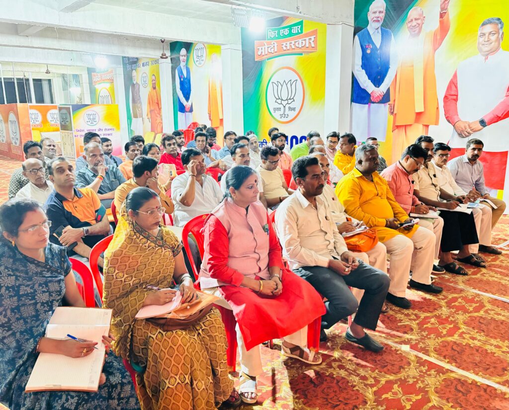 बदायूं। भाजपा केंद्रीय चुनाव कार्यालय पर लोकसभा चुनाव संचालन समिति की बैठक संपन्न हुई। जिसमें मुख्य अतिथि भाजपा उत्तर प्रदेश के सह प्रभारी/ दक्षिण दिल्ली के साँसद रमेश विधूड़ी ने संबोधित किया।भाजपा प्रदेश सह-प्रभारी रमेश बिधूड़ी ने कहा जिन पदाधिकारी पर चुनाव से संबंधित जिम्मेदारियां हैं उनको निचले स्तर तक ले जाकर सौ प्रतिशत पूरा करने का कार्य करें। संचालन समिति में चुनाव कार्यालय, कॉल सेंटर, वाहन व्यवस्था, प्रचार सामग्री, सोशल मीडिया हाईटेक अभियान, मीडिया प्रबंधन, बूथ स्थर के कार्य, वीडियो वैन, प्रचार वाहन, लाभार्थी संपर्क, सामाजिक संपर्क, युवा संपर्क, महिला संपर्क, अनुसूचित जाति संपर्क, विशेष संपर्क अभियान, प्रभावी मतदाताओं से चल रहे सम्पर्क अभियानों की समीक्षा की।