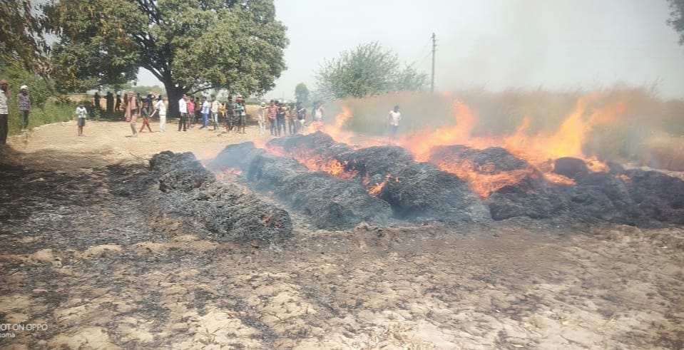 उझानी । ब्लॉक क्षेत्र के एक गांव में खेत के ऊपर गुजर रही एचटी लाइन में शॉर्ट सर्किट होने से चिंगारी से किसान की फसल में आग लग गई जिससे किसान का भारी नुकसान हो गया। शनिवार की सुबह 11 बजे के समीप उझानी ब्लॉक के गांव बनगवां के रहने वाले किसान कुंवरपाल सिंह चौहान ने खेत की पाँच बीघा गेहूँ की फसल काटकर निकालने के लिए खेत में एक स्थान पर एकत्र कर दी थी जिससे उसे निकलवाया जा सके । बताया जाता है तेज हवा चलने से खेत के ऊपर गुजर रही एचटी लाइन आपस में टकराई जिससे चिंगारी उठकर खेत में एकत्र फसल पर गिर गई और फसल में आग सुलगने लगी । फसल में आग लगती देख ग्रामीणो ने किसान कुंवरपाल सिंह चौहान को सूचना दी और आग को बुझाने का भरसक प्रयास किया लेकिन देखते ही देखते आग ने विकराल रूप धारण कर लिया और पाँच बीघा गेहूँ की फसल जलकर राख हो गई । ग्रामीणो ने पीड़ित किसान को मुआवजा दिए जाने की प्रशासन से मांग की है।