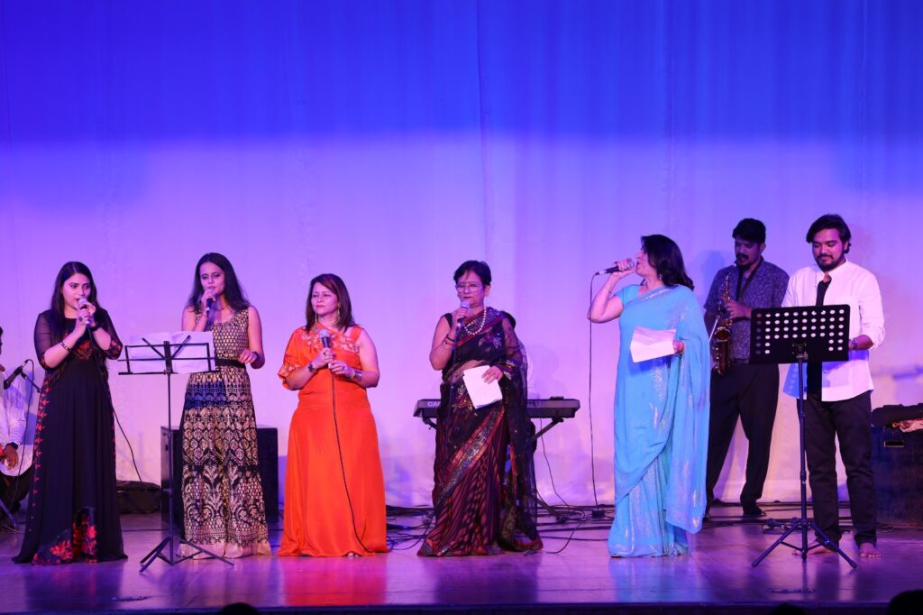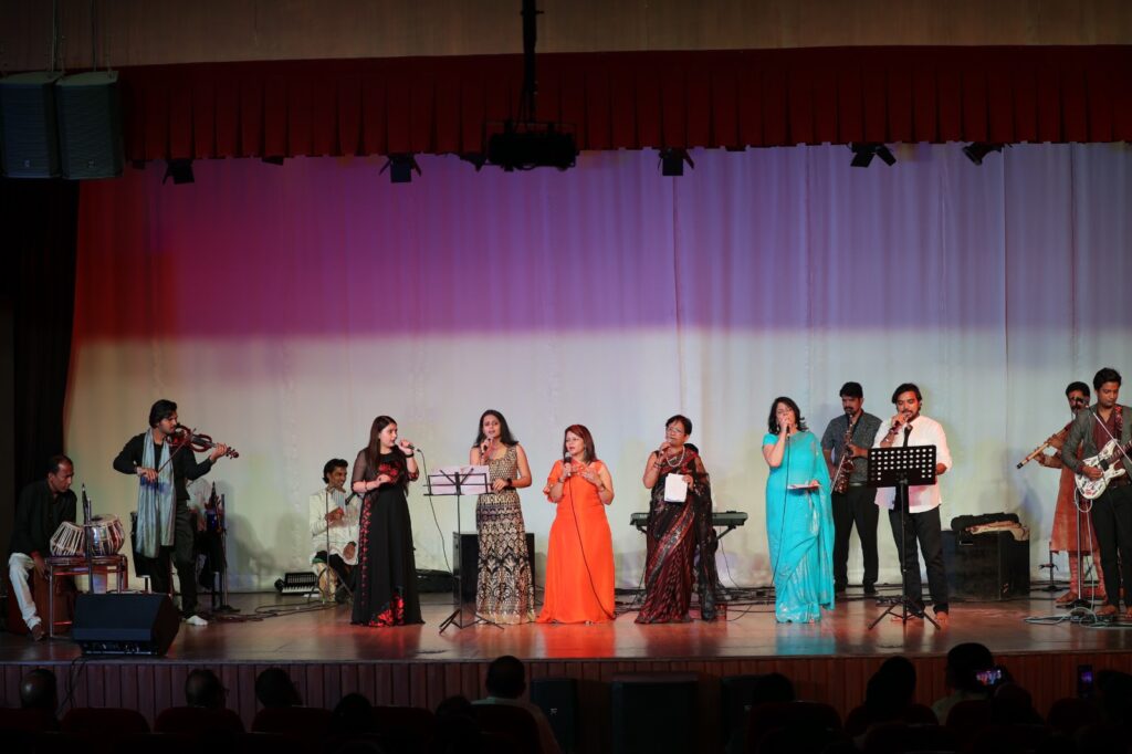 गायन की विद्यार्थी वंदना दुग्गल खन्ना ने गुंजी सी है सारी फिजा को अपनी आवाज दी। गायन गुरु स्नेह आशीष दुबे और प्रियंका ग्वाल ने इंस्ट्रूमेंटल गुरु हिमांशु चंदा के साथ मिल कर प्रसिद्ध फिल्मी गीतों के मुखड़ों को आवाज दी तो गायन के विद्यार्थियों ने बालीवुड के कर्णप्रिय गीतों की पैरोडी प्रस्तुत कर श्रोताओं को मंत्रमुग्ध किया। अंत में सभी ने पुराने गानों को अपनी आवाज देकर श्रोताओं को 70- 80 के दशक में पहुंचा दिया। कार्यक्रम में उमेश मिश्रा (सारंगी), कुंवर पाल (सितार), सूर्यकांत चौधरी (वायलिन), आशीष सिंह (कीबोर्ड), टुकमनी सेन (हारमोनियम/एकोर्डियन), हिमांश चंद्रा (गिटार), सूरज पांडेय (बांसुरी), सुमन बिस्वास (कांगो), अमरनाथ (तबला), रोनी फिलिप्स (सैक्सोफोन) और प्रियांशु (ड्रम) ने भी वाद्ययंत्रों की6 संगत से अपनी उपस्थिति दर्ज कराई। इस मौके पर एसआरएमएस ट्रस्ट के संस्थापक व चेयरमैन देव मूर्ति , आदित्य मूर्ति , आशा मूर्ति , सुभाष मेहरा, डा.प्रभाकर गुप्ता सहित शहर के गण्यमान्य लोग मौजूद रहे।