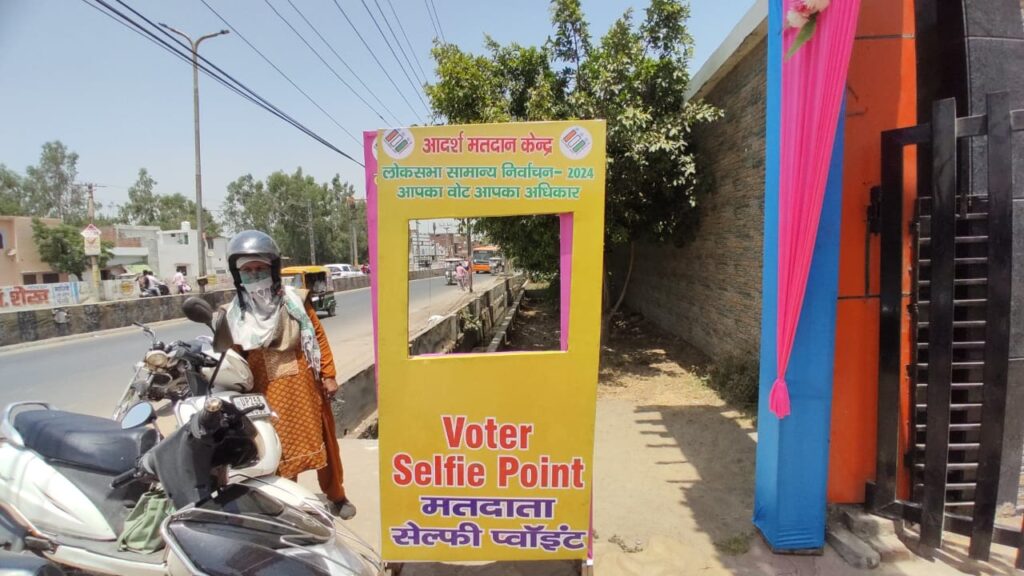 बरेली। आज 7 मई को होने वाले लोकसभा चुनाव के लिए जिला प्रशासन ने अनेक स्थानों पर पिंक बूथ और कमपोजिट बूथ तैयार किए हैं इन इन बूथ पर सेल्फी प्वाइंट भी बनाई गई है लोग मतदान के बाद अपनी सेल्फी ले सकेंगे बूथों को गुब्बारों से सजाया गया है