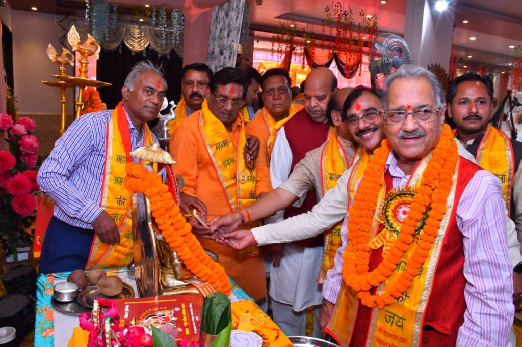बरेली । श्री अग्रवाल सभा कल्याण सोसायटी द्वारा दो दिवसीय वैवाहिक परिचय सम्मेलन का आयोजन किया गया कुलदेवी मां महालक्ष्मी, अग्रकुल प्रवर्तक श्री श्री 1008 महाराजा अग्रसेन के चित्र के समक्ष दीप जलाकर भाजपा राष्ट्रीय कोषाध्यक्ष राजेश अग्रवाल व व्यापारी सुरक्षा फोरम के राष्ट्रीय संयोजक अशोक गोयल द्वारा शुभारम्भ हुआ विवाह योग्य अग्रवाल समाज के लगभग 400 युवक-युवतियों का हुआ परिचय कराया गया। अग्रवाल सभा के पदाधिकारियो ने स्मृति चिन्ह प्रदान कर व शॉल उढ़ाकर अतिथियों का स्वागत, अभिनन्दन किया, तदोपरांत परिचय पुस्तिका का विमोचन किया गया। श्री अग्रवाल सभा कल्याण सोसायटी के तत्वाधान में दो दिवसीय अग्रवाल वैवाहिक परिचय सम्मेलन का शुभारम्भ के दौरान मुख्य अतिथि भारतीय जनता पार्टी के राष्ट्रीय कोषाध्यक्ष राजेश अग्रवाल ने अपने सम्बोधन मे कहा कि अग्रवाल समाज ने सदैव ही दूसरों का परोपकार किया है, सेवा ही अग्रवाल समाज का संकल्प व ध्येय रहा है, सामाजिक समरसता में अग्रवाल समाज का महत्वपूर्ण योगदान रहा है। इस तरह के आयोजन समाज को सदृढ़ व संगठित बनाने के लिए मील का पत्थर है। व्यापारी सुरक्षा फोरम के राष्ट्रीय संयोजक अशोक गोयल ने कहा कि विवाह योग्य युवक-युवतियों के लिए अग्रवाल सभा ने जो मंच उपलब्ध कराया है वह सराहनीय है।