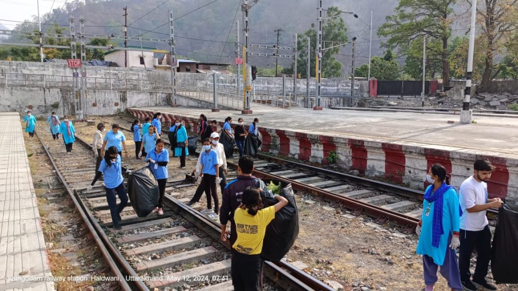 एनजीओ द्वारा इज्जतनगर मंडल के काठगोदाम रेलवे स्टेशन पर “गो ग्रीन-गो क्लीन” के थीम पर आधारित स्वच्छता अभियान चलाया गया। जिसमें पर्यावरण जागरूकता रैली निकाली गई व रेलवे स्टेशन के सर्कुलेटिंग एरिया एवं यार्ड ट्रैक तथा लॉन्ड्री एरिया में विशेष सफाई अभियान चलाया गया।