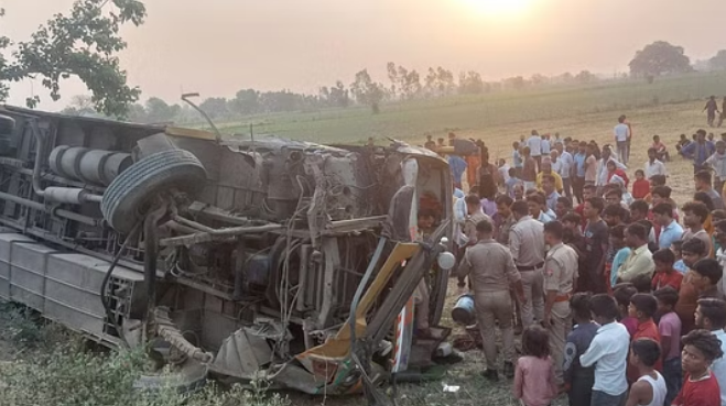 हरदोई। जिले में पाली थाना क्षेत्र में बुधवार सुबह भीषण सड़क हादसा हो गया। इसमें पलिया से 70 नेपाली लोगों को लेकर मुंबई जा रही डबल डेकर बस पाली-शाहाबाद मार्ग पर अनियंत्रित होकर पलट गई। हादसा परेली गावं से आगे कुछ दूरी पर ददेउरा मोड़ के पास हुआ।यहां पाली की ओर से तरबूज भरी ट्रैक्टर-ट्राली अचानक सामने आने से बस अनियंत्रित होकर खंती में पलट गई। बस पलटने से सवारियों में चीखपुकार मच गई। हालांकि, हादसे में कोई जनहानि नहीं हुई है। कुछ लोगों को मामूली चोटें आई हैं। सभी को शाहाबाद सीएचसी भेजा गया है।