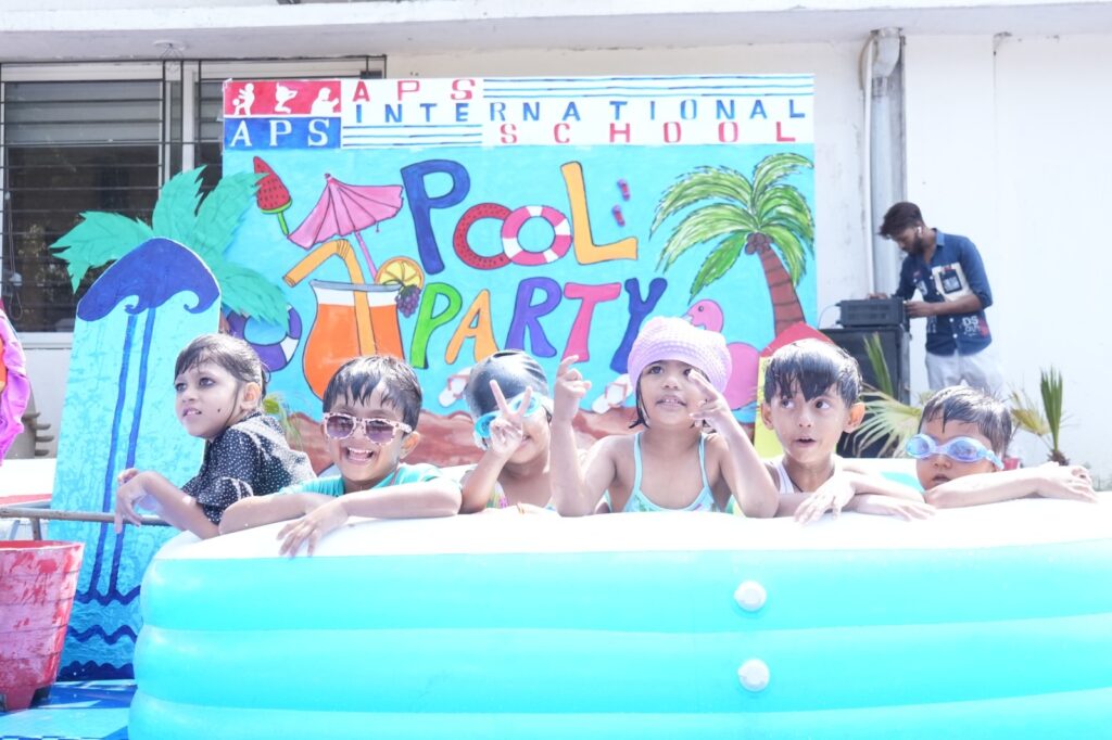 उझानी। ए0पी0एस0 इंटरनेशनल स्कूल में पी0एन0सी0, एन0सी0 और के0जी0 कक्षाओं के विद्यार्थियों के लिए पूल पार्टी का शानदार आयोजन किया गया। विभिन्न गतिविधियों में भाग ले रहे बच्चे बहुत ही प्रसन्न नजर आ रहे थे। पूल पार्टी के अंतर्गत ’कलैक्ट दबॉल्स’ व ’कलैक्ट द वाटर गेम’ रेणुका साह के निर्देशन में हो रहा था। सिम्मी नाजिर के निर्देशन में बच्चे विभिन्न धुनों पर धिरककर अपनी प्रसन्नता दर्शा रहे थे। कही बच्चे अपने साथियों के साथ पार्टी कर खान-पान का आनंद उठा रहे थे। कुछ बच्चे झूले पर झूल रहे थे।