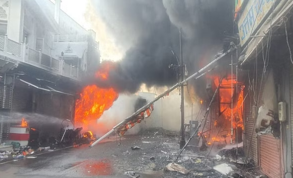 आगरा। उत्तर प्रदेश के आगरा जिले में रेडीमेड कपड़ों की सबसे बड़ी मार्केट सिंधी बाजार में आग लगने से हड़कंप मच गया। एक दुकान में लगी आग तेजी से लाइन से लगी अन्य दुकानों में फैलने लगी। दुकानदारों को इतना समय तक नहीं मिला कि वे थोड़ा बहुत भी सामान बाहर निकाल सकें। लोगों ने तेजी से आग बुझाने के लिए प्रयास शुरू करने के साथ ही दमकल को सूचना दे दी। कपड़ा मार्केट में आग लगने की जानकारी मिलते ही पुलिस के साथ दमकल की कई गाड़ियां मौके पर पहुंच गईं। आग पर काबू पाने के लिए प्रयास शुरू कर दिए गए हैं।