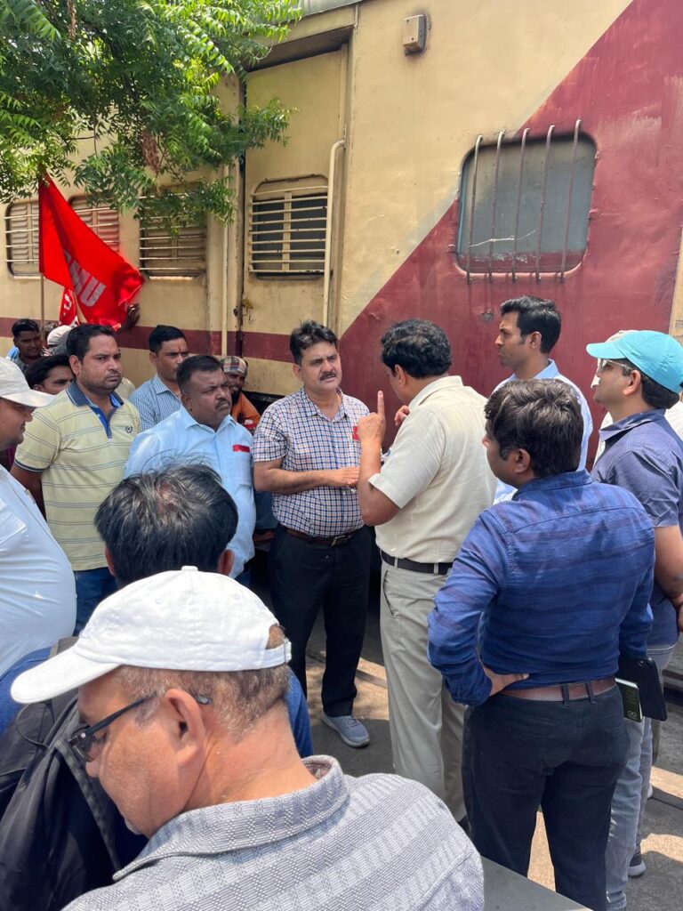 बरेली। नार्थर्न रेलवे मेंस यूनियन बरेली शाखा द्वारा मंडल रेल प्रबंधक मुरादाबाद आर के सिंह के बरेली आगमन पर एस एंड टी विभाग के सभी अनैतिक स्थानान्तरण को लेकर एक प्रचण्ड विरोध किया गया। जिसमें नार्थर्न रेलवे मेंस यूनियन बरेली शाखा के पदाधिकारियों एवं डेलीगेट्स एवं सदस्यों एंव भारी संख्या में रेल कर्मचारियों ने भाग लिया। डी आर एम मुरादाबाद अपनी इंस्पेक्शन कार से उतरकर सीधे सिक लाइन बरेली जं पहुँचे जहाँ पर एन आर एम यू बरेली शाखा की टीम ने अपना विरोध प्रदर्शन किया और जमकर नारेवजी की मंडल रेल प्रबंधक ने शाखा सचिव राजेश दुबे एंव शाखा अध्यक्ष मुशर्रफ़ खान से वार्तालाप की और उन्होने बताया कि वो इस मुद्दे को गंभीर रूप से देख रहे हैं एवं इसकी जाँच करके है कर्मचारी हित में कार्य करेंगे उन्होंने कहा की कुछ महिलाओं एंव दिव्यागों के ट्रान्सफर रद्द कर दिए गए हैं