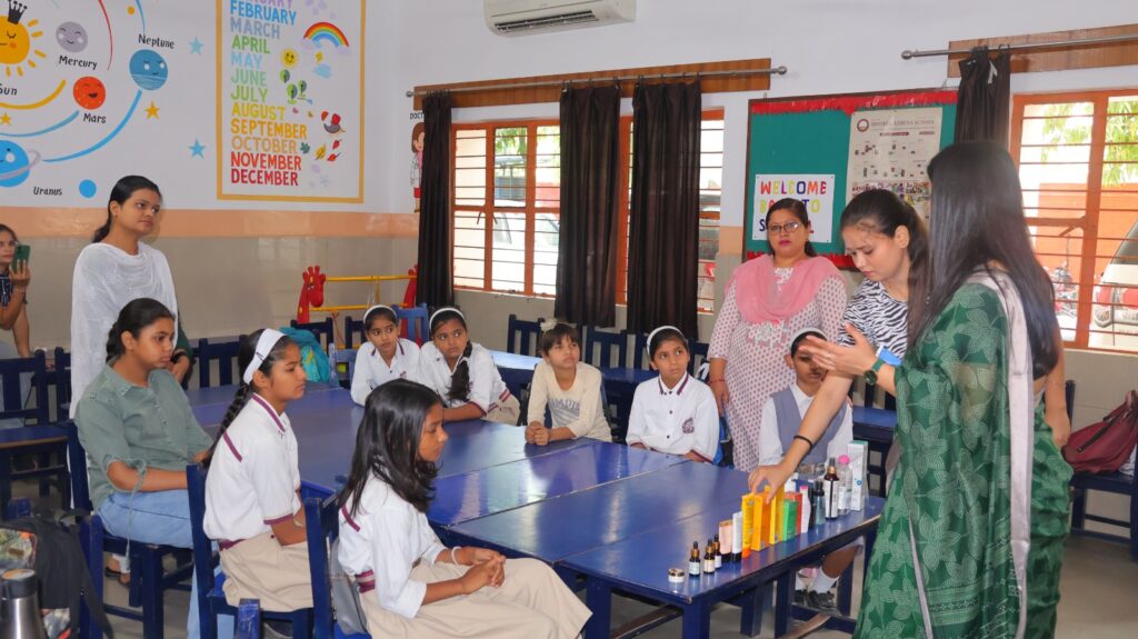 इसके अलावा ‘मेडीटेशन’ के अंतर्गत प्रशिक्षिका ज्योति द्वारा विद्यार्थियों को ‘मेडीटेशन’ के द्वारा ध्यान की मुद्रा में रहते हुए आँखें बंद करके वस्तुओं को पहचानना, पढ़ना आदि का प्रशिक्षण प्रदान किया गया। विद्यालय की निदेशिका चयनिका सारस्वत ने बताया कि दिनोंदिन बढ़ते तापमान एवं प्रदूषण के कारण हमारी त्वचा को बहुत नुकसान झेलना पड़ता है साथ ही कठोर, शुष्क एंव हानिकारक वातावरण का सामना भी करना पड़ता है। अतएव ऐसे माहौल के दौरान हम अपने शरीर, त्वचा एवं सौंदर्य को कैसे सुरक्षित रख सकते हैं इसका प्रशिक्षण अथवा ज्ञान होना विद्यार्थियों को अत्यंत आवश्यक है साथ ही इस कंप्यूटर एवं मोबाइल के युग में अपने ध्यान को केंद्रित करना, स्वयं को एकाग्रचिŸा एवं शांत रखने का ज्ञान प्राप्त करना भी विद्यार्थियांे के लिए बेहद जरूरी है जिसके लिए समर कैंप से बेहतर और कोई समय नहीं हो सकता।