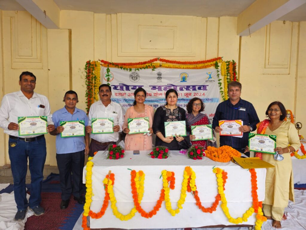 योग दिवस को मनाने का उददेश्य लोंगों को योग के जरिए स्वस्थ और निरोगी जीवन के प्रति जागरूक करना है। आयुष मंत्रालय, नई दिल्ली , आयुष विभाग उप्र एवं निदेशक आयुर्वेद सेवाएं द्वारा निर्धारित प्रोटाकाल के अनुसार प्राचार्य प्रो डीके मौर्य के निर्देशन में 15 जून से 21 जून 2024 तक प्राटोकाल के अनुसार प्रत्येक दिवस सामूहिक योगाभ्यास कार्यक्रम, प्रतियोगिताऐं, एवं संगाष्ठी, सेमीनार का आयोजन किया गया है। प्रतियोगिता के विजेता छात्रों को पुरस्कृत किया गया। योगासन में बैच 2021 की छात्रा दिव्या गुप्ता प्रथम, बैच 2022 की छात्रा मोनिका टण्डन द्वितीय , आशु भाषण प्रतियोगिता बैच 2023 के छात्र रवि अग्रहरि प्रथम एवं बैच 2023 की आरजू राजपूत, निबन्ध प्रतियोगिता के विजेता -बीएएमएस बैच 2020 के छात्र सत्येन्द्र कुमार पटेल प्रथम स्थान, आकाश यादव द्वितीय ड्राइंग प्रतियोगिता बैच 2023 की छात्रा पिंकी प्रथम 2021 के छात्र आकाश यादव ने द्वितीय स्थान रंगोली प्रतियोगिता में प्रथम स्थान अमन, आरजू राजपूत, प्रेम प्रकाश, द्वितीय निशा, प्रीति वर्मा, अनुराग पाठक, रहे। आयोजन को सफल बनाने में जिनका योगदान रहा है उनको परस्कुत किया गया। कार्य एवं कर्तव्यनिष्ठा के लिये शिक्षकों को योग वीरांगना पुरस्कार एवं योग वीर पुरस्कार से सम्मानित किया गया, योग विरांगना प्रो प्रीति शर्मा, योग विरांगना डाॅ दिपशिखा जोशी, योग विरांगना डाॅ वीरकीर्ति, योग विरांगना डाॅ रिंकी , योग वीर पुरस्कार प्रो योगेश कुमार, प्रो देवकी नन्दन शर्मा, योग वीर डाॅ संतोष कुमार, सर्विस एक्सीलेन्स अवार्ड डाफ मधु, गरिमा सिंह, राज संगीता मैसी, महेन्द्र शंकर पाण्डे को देकर सम्मानित किया जा रहा है फाईनल वर्ष में सर्वाधिक अंक वाले छात्रों को एकेडमिक अचिवमेन्ट अवार्ड प्रिया सिंह, सना मलिक, अनिशा सिंह, अंशिता को दिया। अंत में उपदेशक डाॅ अतुल कुमार, उपदेशक डाॅ संतोष कुमार, डाॅ रिंकी को उत्कृष्ट पुरस्कार दिया गया। कार्यक्रम में समस्त शिक्षक, चिकित्सक कर्मचारी एवं छात्र छात्रा उपस्थित रहें। कार्यक्रम का संचालन डॉ शांतुल गुप्ता एवं डॉ संतोष कुमार द्वारा किया गया!