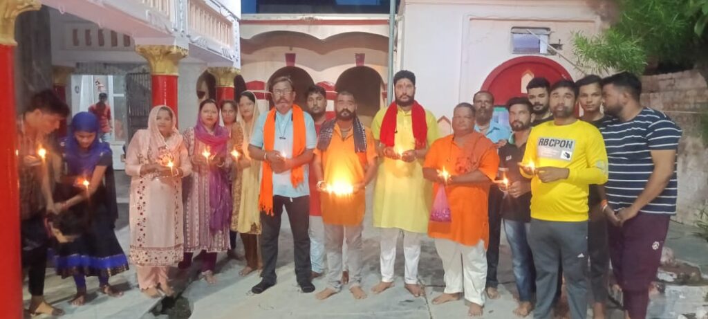 बरेली। आजाद हिंदू सेना बरेली की ओर से नाथनगरी बरेली में स्थित सप्तनाथ मंदिरों में महा आरती के आयोजन में सर्वप्रथम बाबा महादेव की महा आरती मणिनाथ स्थित मणिनाथ मंदिर से किया गया समस्त आजाद हिंदू सेना के कार्यकर्ता राष्ट्रीय अध्यक्ष अमित राठौर के नेतृत्व में मणिनाथ मंदिर परिसर में एकत्र हुए जहां सावन के महापर्व के शुभारंभ में सात नाथ मंदिरो में महा आरती के आयोजन के संबंध में सर्व प्रथम महा आरती का आयोजन मणिनाथ मंदिर में किया गया। महा आरती से पहले राष्ट्रीय अध्यक्ष अमित राठौर वह वहां उपस्थित कार्यकर्ता द्वारा महादेव के शिवलिंग को जल अभिषेक व दूध अभिषेक कर पूजा अर्चना की तत्पश्चात 251 दीपों को प्रचलित कर डमरू ढोल मजीरों के साथ पुष्प वर्षा कर हर हर महादेव,जय शंभू के जय घोष के साथ महा आरती की गई आरती के बाद महादेव को प्रसाद का भोग लगाकर मंदिर प्रांगण में उपस्थित समस्त कार्यकर्ता व वहा उपस्थित समस्त भक्तगणों में प्रसाद का वितरण किया गया। इसी कढ़ी में राष्ट्रीय अध्यक्ष जी ने बताया कि अगली महाआरती सुभाषनगर स्थित तपेश्वरनाथ शिव मंदिर पर होगी महाआरती में मुख्य रूप से आजाद हिंदू सेना के राष्ट्रीय अध्यक्ष अमित राठौर राष्ट्रीय महासचिव रवि शंकर प्रदेश प्रभारी विनोद मिश्रा प्रदेश मंत्री बाबा लहरी महिला मोर्चा जिला उपाध्यक्ष मोना श्रीवास्तव महिला मोर्चा जिला महासचिव युवा पलक श्रीवास्तव युवा मोर्चा जिला उपाध्यक्ष छोटू यादव युवा जिला सचिव विशाल प्रजापति ,यस जोहरी, राकेश बधवा , सोनू सिंग , दीपक, जुगनू श्रीवास्तव आदि दर्जनो सैनिक उपस्थित रहे।