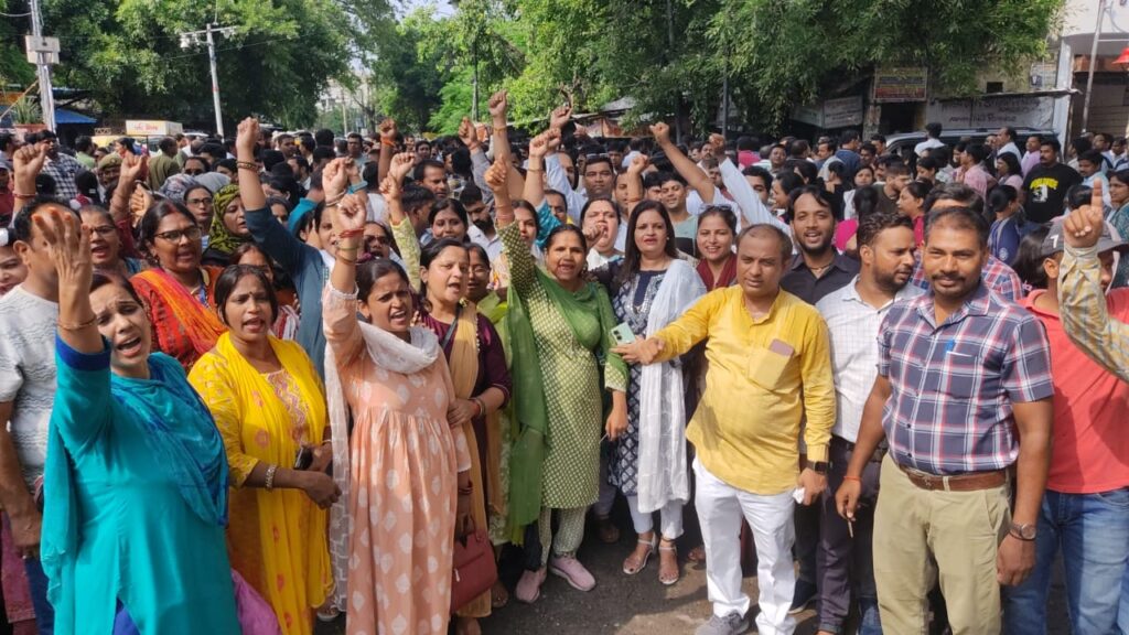 बरेली । राष्ट्रीय शैक्षिक महासंघ बरेली की टीम ने जिला महामंत्री विनोद कुमार की अध्यक्षता में जिला अधिकारी कार्यालय में सिटी मजिस्ट्रेट राजीव शुक्ला को मुख्यमंत्री को संबोधित ज्ञापन सौंपा। जनपद के सभी संगठनों के सहयोग से सभी ब्लॉकों के शिक्षको ने विरोध प्रदर्शन में बढ़ चढ़ कर हिस्सा लिया। जिला महामंत्री विनोद कुमार ने बताया कि डिजिटल उपस्थिति किसी भी हाल में स्वीकार नही है। पहले शासन को शिक्षकों की 22 सूत्रीय मांगे पूरी करनी चाहिए, जिससे ज़मीनी स्तर पर आ रही शिक्षको की समस्याओं का निराकरण हो सके l जिला संग़ठन मंत्री जितेंद्र गंगवार द्वारा बताया गया कि बेसिक का शिक्षक रोज़ाना 80km से 90 km का सफर तय करता है। उसे कच्चे रास्ते, रेलवे क्रासिंग,गॉव में सड़क पर गन्ने की ट्राली के कारण रोड बंद, जलभराव जैसी अनेक समस्यों का सामना करना पड़ता है।ऐसे में थोड़ा बहुत विलम्ब हो जाना आम बात है। जबकि जो विभाग शहर में स्थित है पहले वहां ऑनलाइन उपस्थिति लागू होनी चाहिए।